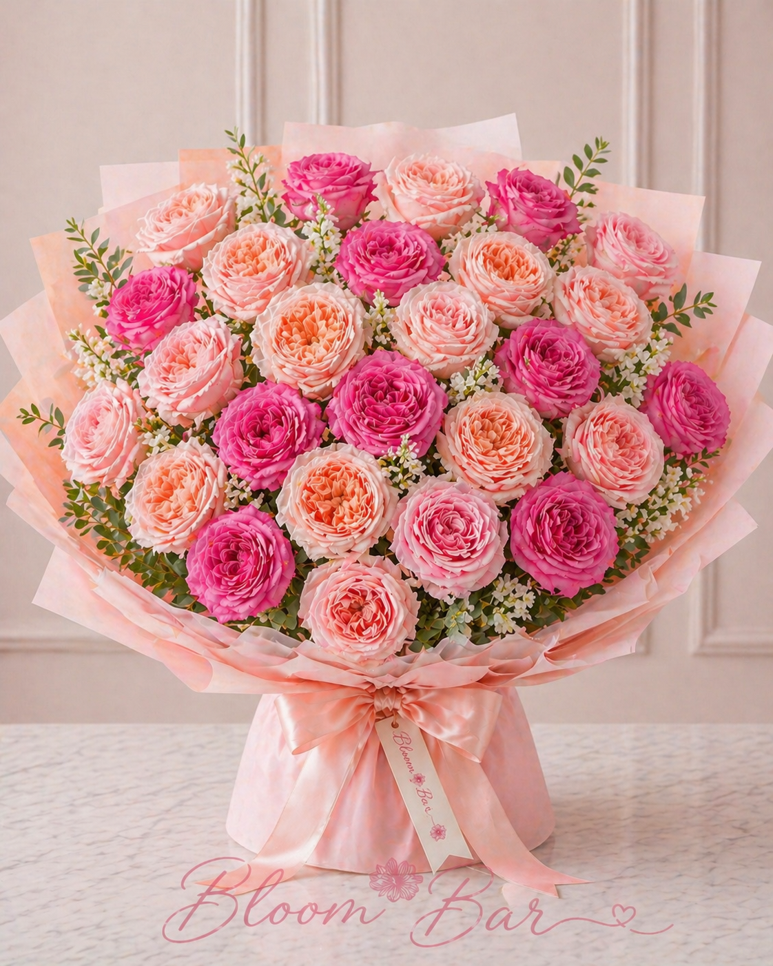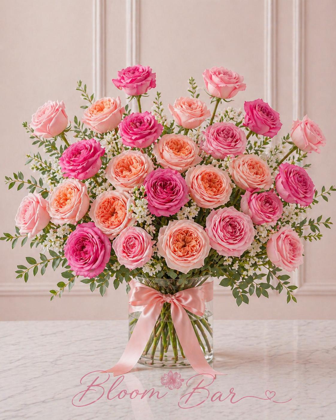 Our rose dozens are a traditional Bloom Bar favorite, featuring 12 or 24 premium, long-stem roses wrapped to perfection with lush seasonal greenery and our signature playful filler flowers. This timeless wrap comes in one dozen or two dozen roses that are perfect for saying thank you to the women in your life. Simply choose the size and style and we’ll take care of the rest!